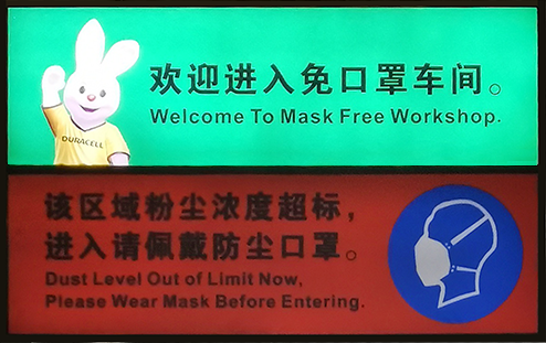 2009年,美國(guó)金霸王總部為了表彰該案例的卓越成就,專門給總裝生產(chǎn)線車間頒發(fā)了“免口罩車間”匾牌,鼓勵(lì)員工上班不用戴口罩。